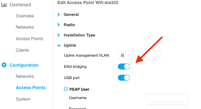 If you want to hang a wired client off of the AP ethernet port, you’ll need to do the following steps. Pictures are included in the gallery below. I talk about eth0 mainly as some AP only have a single uplink. If you have an AP with multiple ethernet ports, you can skip step 1 and simply assign the port profile at the end to the needed AP ports.