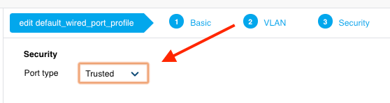 - Set the port Security to either ‘Trusted’ (easiest) or ‘Untrusted’ if you want to assign different roles to the users